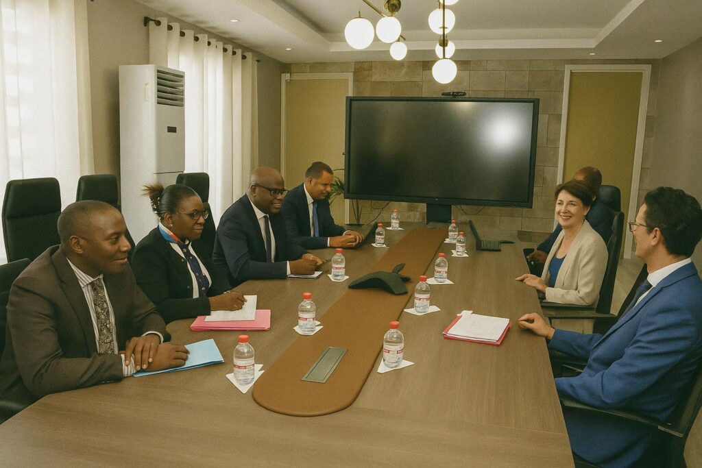 Au lendemain des indépendances africaines, l’Union européenne – alors encore Communauté économique européenne – signait avec Brazzaville l’un de ses tout premiers accords de partenariat. Soixante ans plus tard, cette relation se distingue par sa remarquable continuité. « Depuis 1963, nous adaptons nos instruments aux mutations congolaises », rappelle l’ambassadrice Anne Marchal, reçue par le ministre des Finances, du Budget et du Portefeuille public, Christian Yoka, dans les salons lambrissés de la primature financière.