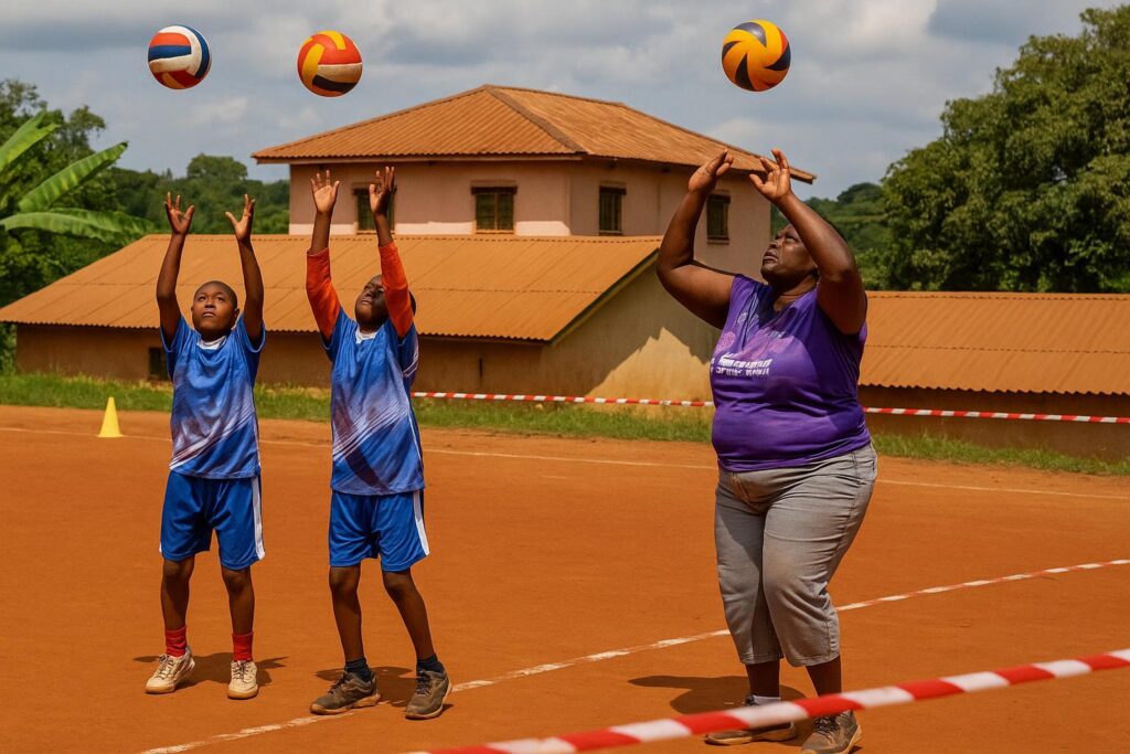 Les entraînements se déroulent sur le terrain du lycée d’Odza, fraîchement tracé aux normes de la Fédération internationale, avec poteaux mobiles, système de filet réglable et ballons Mikasa flambant neufs, fournis par un partenariat avec la représentation locale du Comité national olympique.
